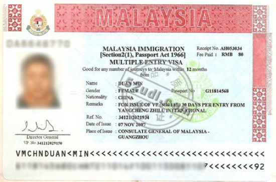 马来西亚签证样本