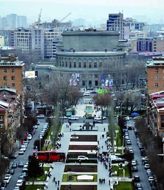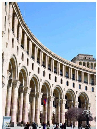 早在公元300年,亚美尼亚的国王信奉了基督教,亚美尼亚也成了世界上最早将基督教列为国教的国家。它最原始的十字架教堂设计,为各地的教堂建筑师提供了蓝图和灵感,然而现在首都埃里温却不容易看见教堂的踪影,不少教堂在苏联统治时期就被拆毁。工整的街道上尽是苏联风格的气势恢宏但缺乏人气的楼房,其中不少改造成博物馆、美术馆和奢华酒店。 埃里温的建筑采用当地盛产的粉色火山岩打造,在阳光的照耀下,有种温柔的粉红色光泽,因此她也被称为粉红之城。市中心很小巧,街道也设计得十分人性化,步行即可游览主要景点,是一个十分适合闲逛的地方,只需要当心横冲直撞的车子。埃里温的新贵们正用一种不可一世的方式炫耀财富,开放以来,亚美尼亚每年GDP增长率超过10%,算是突飞猛进,不少人一夜致富,埃里温多了供人挥霍的休闲场所及顶级餐厅等,但这也加剧了贫富悬殊,周末的埃里温有个巨大露天市集,售卖不少家里用的二手货,买卖的人都很多,这表示这个国家还没学会也没有资格浪费。 埃里温的中心是一个花园广场,平日也经常能看见无所事事的亚美尼亚人在这里闲逛,似乎他们都不用上班,以亚洲人的标准来看,亚美尼亚人对待工作的态度十分散漫,他们总以生活为重,因此出太阳的日子,总能在街道上看见大量的亚美尼亚人,泡在能晒到阳光的位置上,棕发碧眼的亚美尼亚人显得格外的漂亮和自信。
