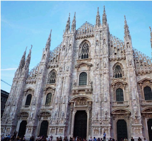 我从科莫来到了米兰,一时间还无法适应米兰相对的喧嚣。直到看到街上相拥热吻的恋人,欢乐追逐的孩童,发现人们的脚步并不匆忙,我才释然,嗯,这才是我心中的意大利情调。 米兰市中心是大教堂广场(Piazza del Duomo),广场中间是完成意大利统一大业的国王厄玛努埃尔二世的雕像,北面是以他名字命名的厄玛努埃尔拱廊。东面是是欧洲最著名的哥特教堂之一的米兰主教大教堂,东南是教堂博物馆。 当然,大部分人到米兰主要是为了看米兰大教堂。米兰大教堂(Duomo),也叫杜奥莫大教堂。教堂始建于1386年,用了近500年时间才建成,是欧洲装饰雕像最多的哥特式教堂。教堂有135个大小尖塔,每个塔上都有一座雕像,加上墙上、门上及内部的雕像总共有2200多。拿破仑1805年曾在此加冕兼为意大利国王。 对于旅游者,最不能错过的地方是米兰大教堂的顶层,教堂有6座石梯和两个电梯通往屋顶,顶上纵横交错着33座石桥,连接堂顶各个部分,登上堂顶可鸟瞰全市风光,在晴朗的日子里,还可以看到远处绵延到马特峰的阿尔卑斯山脉风光。