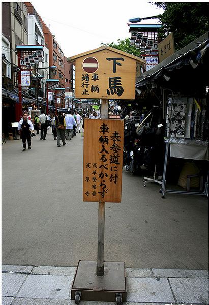 从浅草寺到合羽桥 浅草寺的旁边有一座极具怀旧气氛的游园地名叫"浅草花园馆",从江户末期开园以来已有150多年的历史。像是掠过房顶一般急速飞奔的过山车和其他游戏设施让人多少有点怀旧的感觉。走出庙烟缭绕,鸽子成群的浅草寺,穿过六区,通过国际大道,从田原町到到稻荷町这一路上可以看到不少的寺庙。位于田原町和稻荷町中间,菊屋桥交叉点以北的是起源于大正时代初期的合羽桥工具用品街,大约有170间厨具用品专卖店聚集在这里。当时有数来家工具用品专卖店在这里开业,不过现在已经发展成为了面向专业人士的厨房器具专卖店大街。除了为数众多的批发商之外,也有不少零售商在这里营业。还有一些以模仿食品形状的首饰用品店也出现在这条街上,其商品物件吸引不少顾客流连驻足。