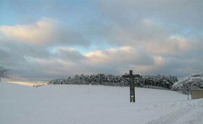 走进教堂,绘制有一道带有童话味道的墙面:亲人在海港送别,死者独自登上船,好像死亡只是出门远行,也独自飞升上了天堂。 临出教堂,我透过玻璃看见外面整个天地,一拉开门哗啦啦忽然就像黑暗的电影院要散戏了,悲伤的过去好像是一百年前的事情,我们又得到一个全新的自我。 从雪地里走进森林,走向一字树林山坡,走过十字架,进论坛门廊以前,往丧家休息间是个小门走进去上厕所,那个休息的小厅里的座椅又是阿斯普伦设计的质材朴拙的座椅。厅堂安静而舒适,六十多年过去,还是相同的谧静与安适,我也敬佩瑞典一如往常的守旧,始终不曾改变建筑家任何一点设计上的心意。 走出来,看过雪地上承受霭霭白雪的大树,树林里无声安静的墓石与灵魂,白茫茫一片大地真干净。