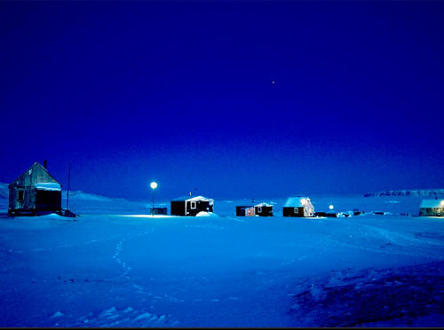 我们的船长来自德国,在格陵兰岛整整呆了25个年头。如果不是对这个冰天雪地的地方有着特殊的爱,谁又能耐得住这份天寒地冻的寂寞呢?在这里的25年,他亲眼见证了气候变化对冰川、对因纽特人生活的影响。船长展开一张地图给大家看,跟150年前相比,附近的冰川已经退后了几十公里,而近几年,冰川后退速度正在加快。我们就这样一边听他讲述,一边向峡湾深处行驶。在一片他认为比较安全的海面上,船长关掉了马达。没有了马达的喧闹,周围忽然安静下来,巨大的冰山在阳光下闪烁着冷艳的光芒。就在每个人都沉醉于这份安宁时,耳边忽然传来巨大的声响,顺着船长手指的方向,我看到一块巨大的浮冰迸裂,轰然掉下的冰块溅起巨大的水浪,飞起的细碎浪花在阳光下闪闪发光。这时,船长把自制的渔网撒入海上,不一会儿,他忽然激动地大喊:“伙计们,我捞到一条大鱼!”等他提起渔网,我才发现原来是一条酷似鱼形的冰块,它晶莹剔透、惟妙惟肖。