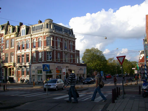 大大小小的船只停泊在并不算宽的河道两侧,这就是传说中的船屋了,现在的船屋都编有门牌号码,固定停泊在河道两边,船屋内的生活设施一应俱全,即使是以船为家,人们仍不失浪漫情趣,摆满花盆种上各色花草,将船屋妆扮得分外可爱。 阿姆斯特丹的城区道路很狭窄,这使得人们更多的使用自行车为交通工具,汽车在这里完全无用武之地,当然这也使得城市环境更为清新。无论是强壮的男人还是貌美的姑娘,都悠然地蹬着各式自行车穿梭于街头巷尾,倒也和谐。