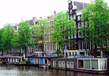 我们从阿姆斯特丹中央火车站出发乘船游览运河。火车站广场的边缘就是游艇密集、热闹非凡的游艇码头,据说是阿姆斯特丹尔河最大最豪华的码头。阿姆斯特尔河不是运河而是一条蜿蜒流贯阿姆斯特丹全市的天然河流,许多运河从此河的隘口流出,在市区绕了一大圈后又从其他的地方注入此河。阿姆斯特丹宽窄不一的运河就象我国城市的大街小巷,所以水中的船只与街道上的汽车一样川流不息,有人说阿姆斯特丹是欧洲的 “北方威尼斯”。 阿姆斯特尔河两岸的风光非常优美,船往南开,水中船水马龙。在船还没有进入闹市区之前,可看见沿河的许多鲜花簇长的绿地,当船徐徐进入辛厄尔运河网后,船就等于在街道上行驶了,说得生动一些就是和平时坐着汽车慢慢地从街中间开过一样。阿姆斯特丹的城市交通图看起来与其他大城市的交通图没有什么区别,都是宽窄不一的蜘蛛网一样的线条布满全市的各个角落,不同的是这些线条代表的不是街道,这里的线条代表的都是运河。